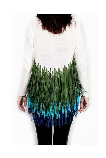 - ARJOSA women’s cotton spandex blends crewneck long sleeve regular fit pullover knitwear jumper especially design and embellished with colorful gradient tassels around from waist to the bottom, fashion and stylish