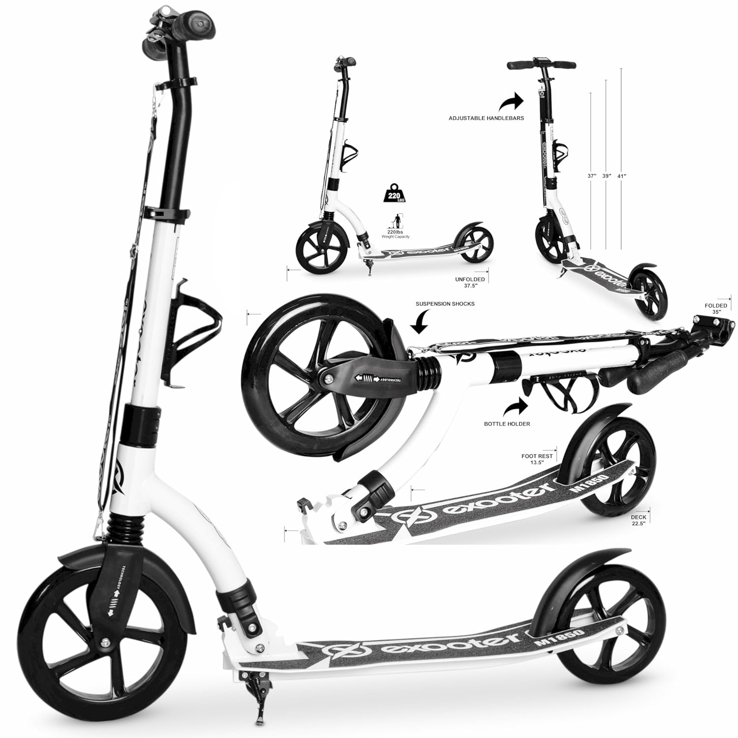 EXOOTER M1850 6XL Adult Kick Scooter With Front Suspension Shocks And 240mm/180mm Black Wheels. price in amazon: $149...